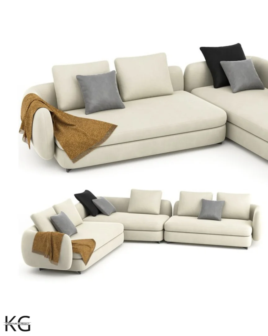 Modern şehir hayatının dinamizmine uyum sağlayan bu L köşe koltuk, yumuşatılmış köşeleri ve dolgun minder yapısıyla günün yorgunluğunu atmak için kusursuz bir alan yaratıyor. Soğuk gri tonlarındaki dokuma kumaşın zarafeti, pirinç gövdeli mermer orta sehpanın ışıltısıyla birleşerek, ferah salonlarda dengeli ve çağdaş bir lüks algısı oluşturuyor.